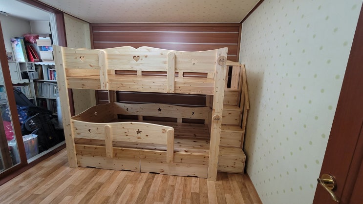 걱정을 날려버린 튼튼한 원목 분리형 이층 침대로 두 딸방에 선물했어요