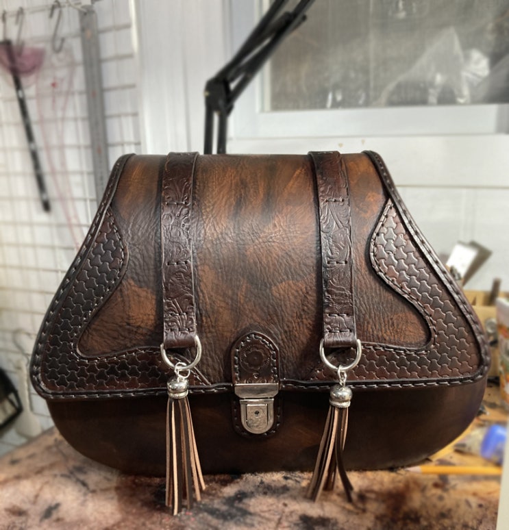 할리데이비슨 통가죽 새들백 제작