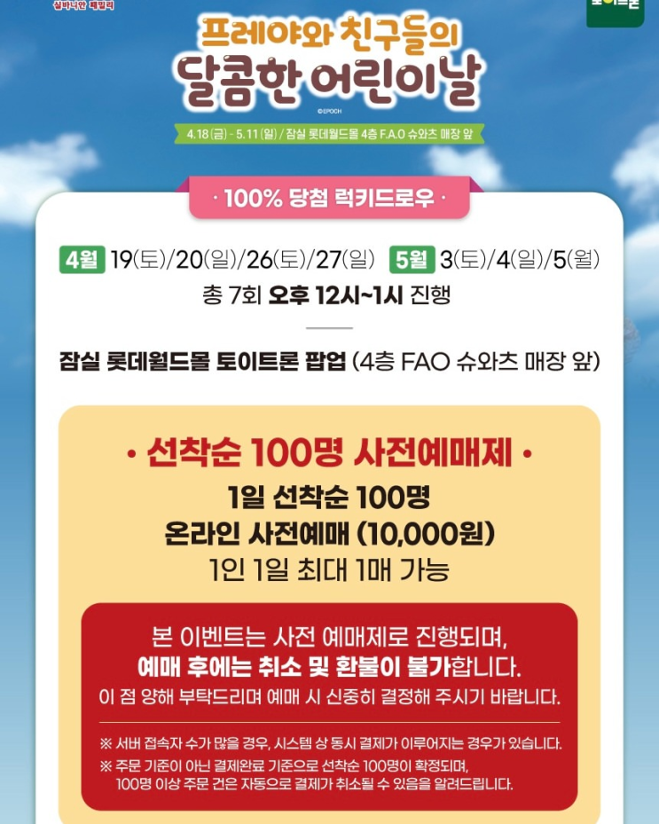 잠실 실바니안 팝업 <프레야와 친구들의 달콤한 어린이날> 럭키드로우 및 상품라인업 소식.(4월18일-5월11일)