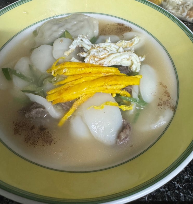 섭취한 것 -떡국 -떡국, 롤케이크 한 조각, 바나나 -먼투썬견과, 코코아+다크초콜릿 -삼겹살, 오리 구이+부...