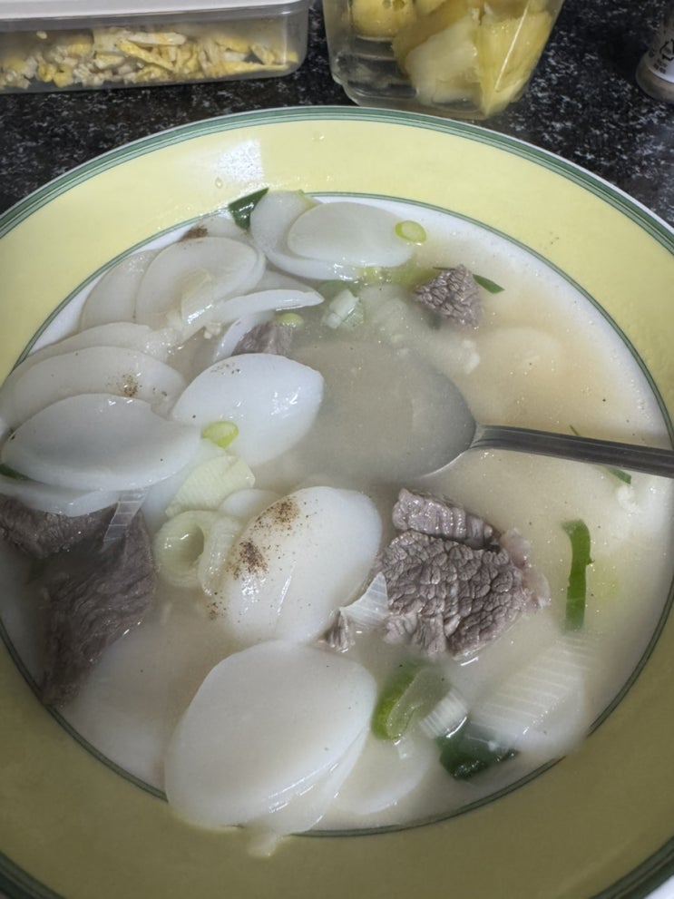 섭취한 것 구운 계란, 요거트 -파프리카, 딸기 -떡만두국 -김밥전 -소고기 구이, 시루떡, 파프리카, 연근샐...