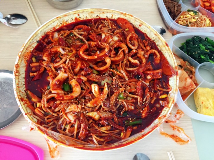 어제 있었던 지인의 조촐한 집들이_ 우리 모임이 즐겨먹는 매콤한 오징어볶음:) 역시나 맛있었다! 사진은 ...
