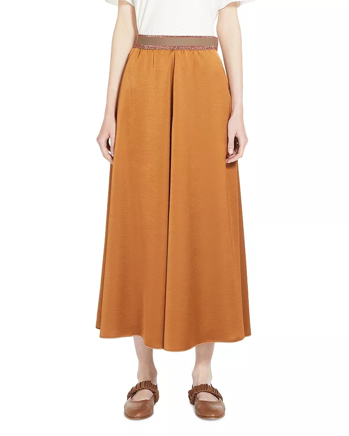 Max Mara Weekend 막스마라 골드 브라운 풀온 새틴 스커트