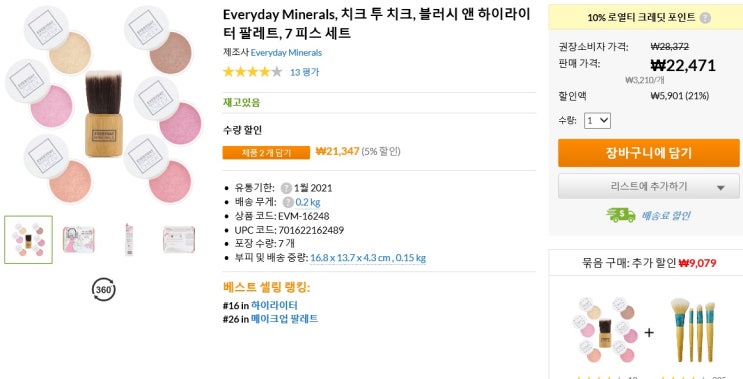 아이허브 화장품 추천! (에브리데이 미네랄 블러셔 세트상품!!)