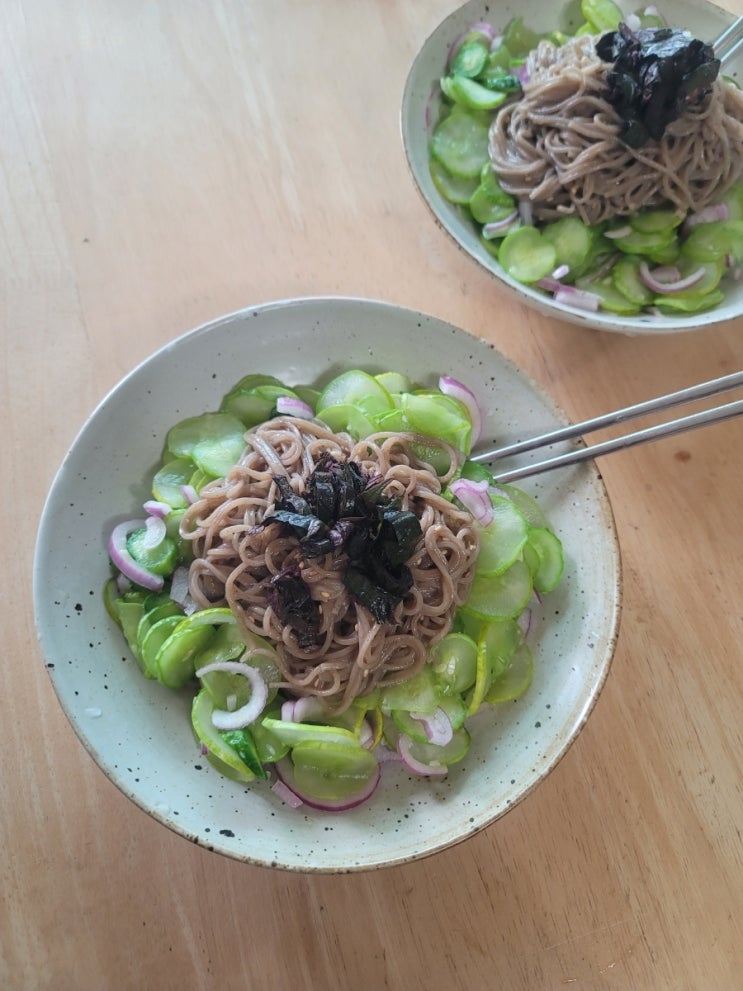 여름 다이어트 음식 오이 들기름 막국수 만들기 간장 메밀국수