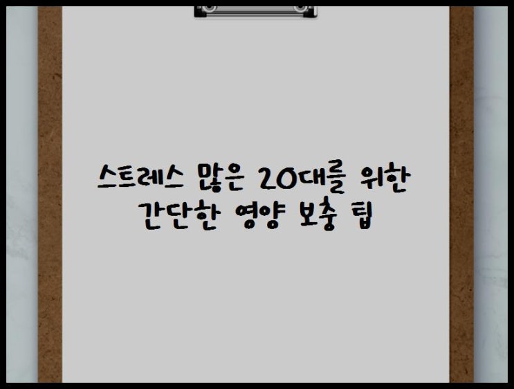 스트레스 가득한 20대, 이 영양 팁 하나면 조금은 버틸 힘이 생겨요 스트레스에 치여 지친 20대 여러분, 혼...