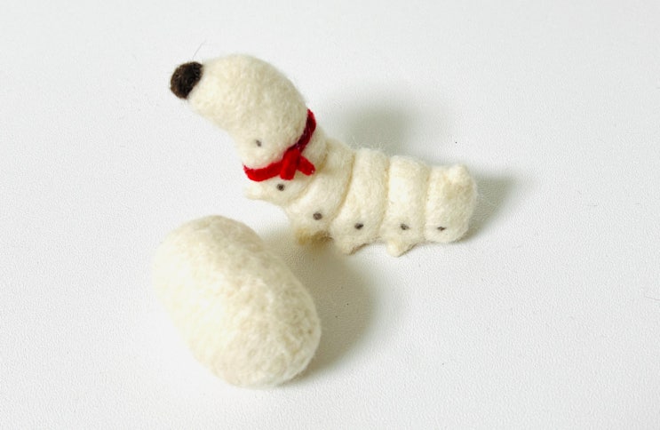 양모로 만든 누에 누에고치 뽕잎