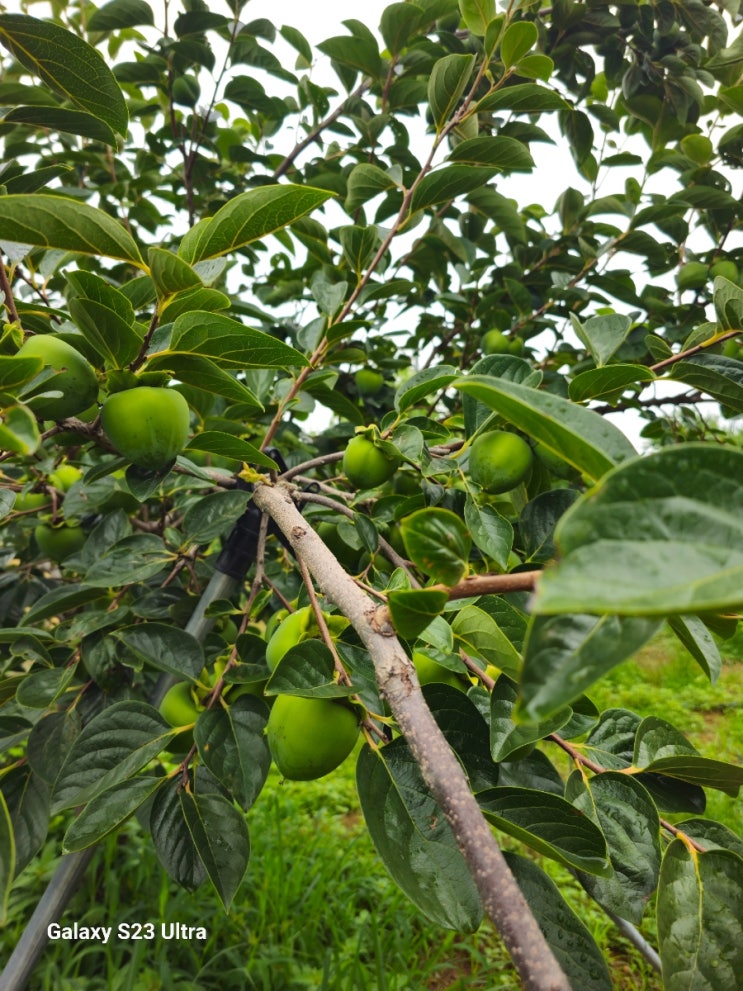 대봉감이다. 올해로 5년차인데 가장 많이 열렸다. 비는 오락가락하고 습도는 거진 100%에 육박하면서 비만 ...