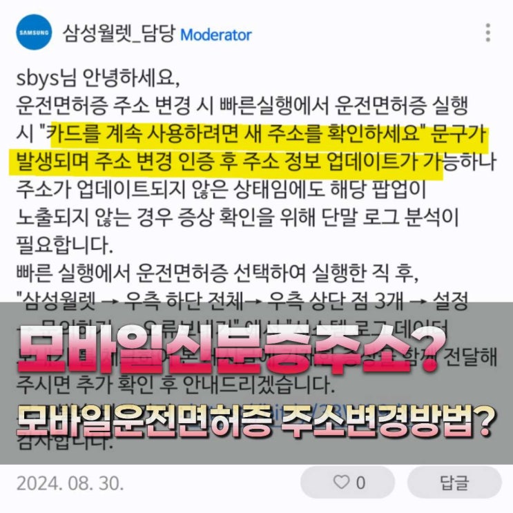 삼성월렛 신분증, 모바일 운전면허증 주소변경 방법은?