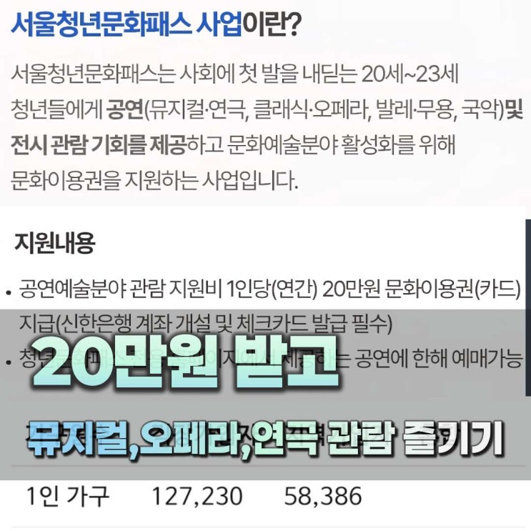 공연 관람지원금 20만원 챙겨요, 서울시 청년문화패스 조건
