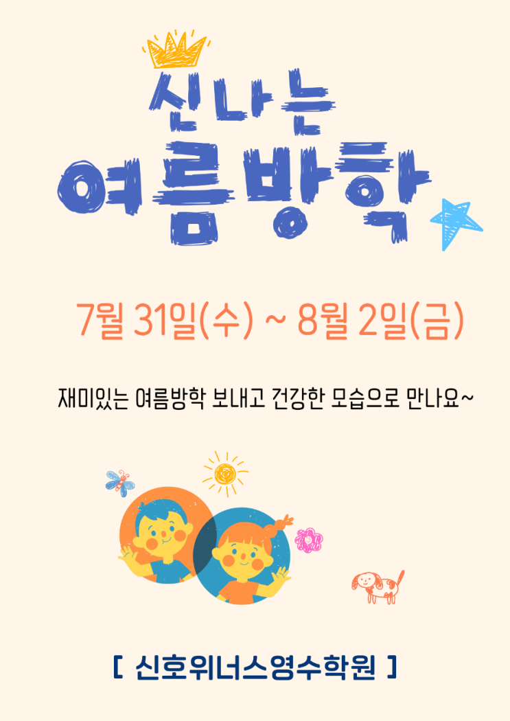 신호동 수학학원 영어학원 신호위너스영수학원 여름방학 일정안내
