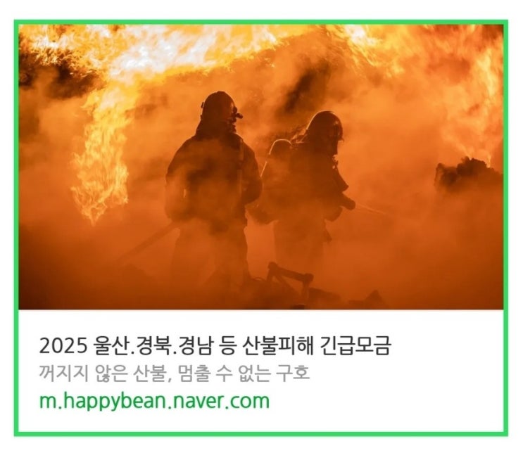산불 때문에 마음이 너무 아픕니다. 하루빨리 파란하늘보며 웃을수 있는 날이 오기를 학수고대합니다. 해피빈 긴급모금동참