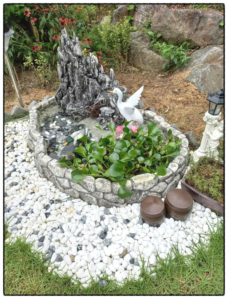 돌수반과 물레방아 분수 인조바위로 멋진 정원 꾸미기 조각상과 베란다 미니 연못 폭우로 힘들었던 7월이 ...