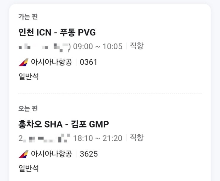 이번 상하이 1박 2일 여행, 가는 길과 오는 길 모두 아시아나항공을 이용했습니다. 출국은 인천 → 푸동(O...