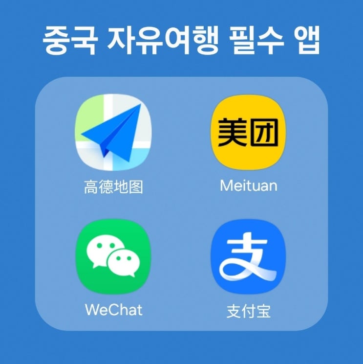 중국 상하이 자유여행 필수 앱(고덕지도, 메이투안, 위챗, 알리페이)