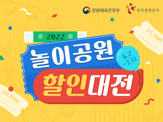 지금은 한국관광공사, 문화체육관광부 2022 놀이공원 할인대전 기간 !!! 6.2 ~ 7.31 까지 30,100원 이상결...