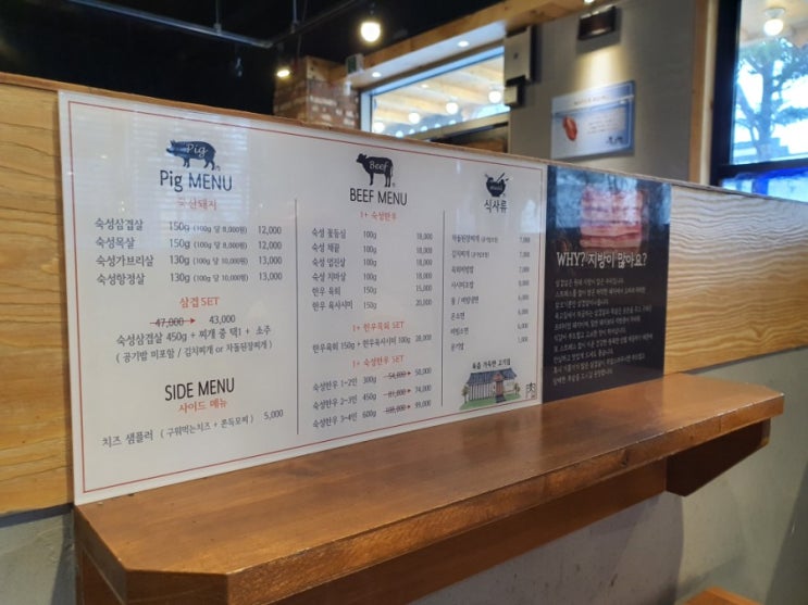 #강릉육고집 #강릉유천고깃집 강릉 육고집 다녀왔어요. 육고집 메뉴판. 저희는 삼겸살세트 주문. 밑반찬들...