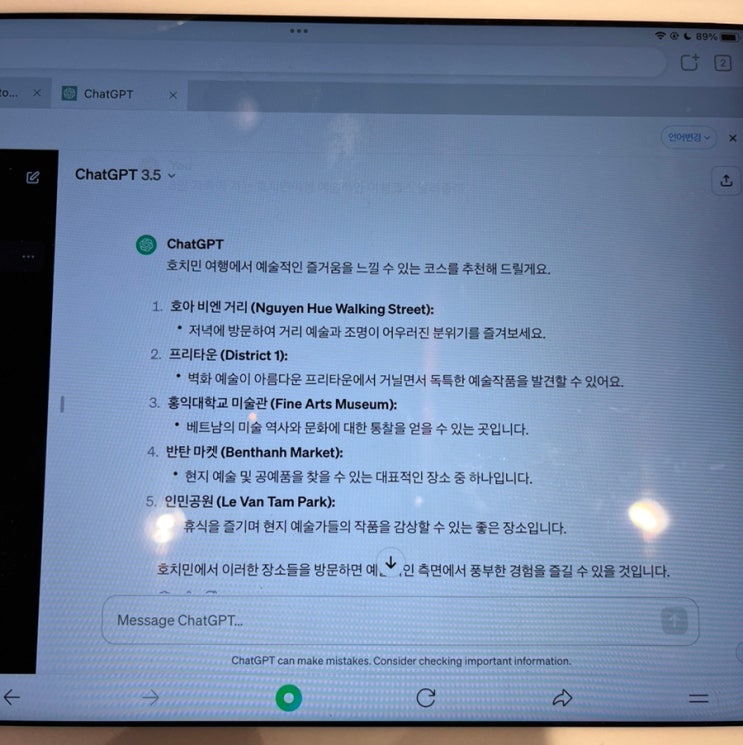 챗 지피티( chatGPT 3.5 )로 호치민 여행 계획짜기