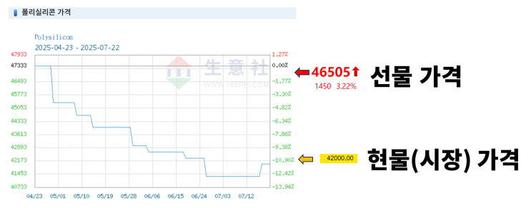 오늘 폴리실리콘 시장현물가가 드디어 선물(53765)을 따라서 46666까지 따라잡으며 폭등하기 시작했습니다....