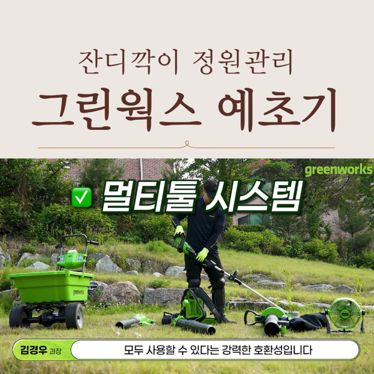 잔디깍이 정원관리 편리한 그린웍스 예초기 정원을 관리하다 보면 가장 번거로운 일 중 하나가 바로 잡초와...
