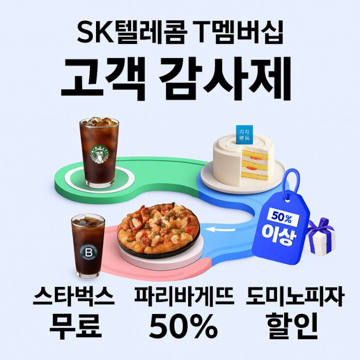 SK텔레콤 T멤버십 고객 감사제 혜택: 스타벅스 무료·파리바게뜨 50%·도미노피자 할인