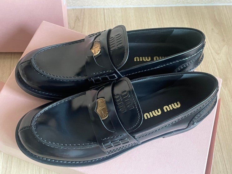미우미우 브러쉬드 가죽 페니로퍼 명품 블랙 여성로퍼 추천