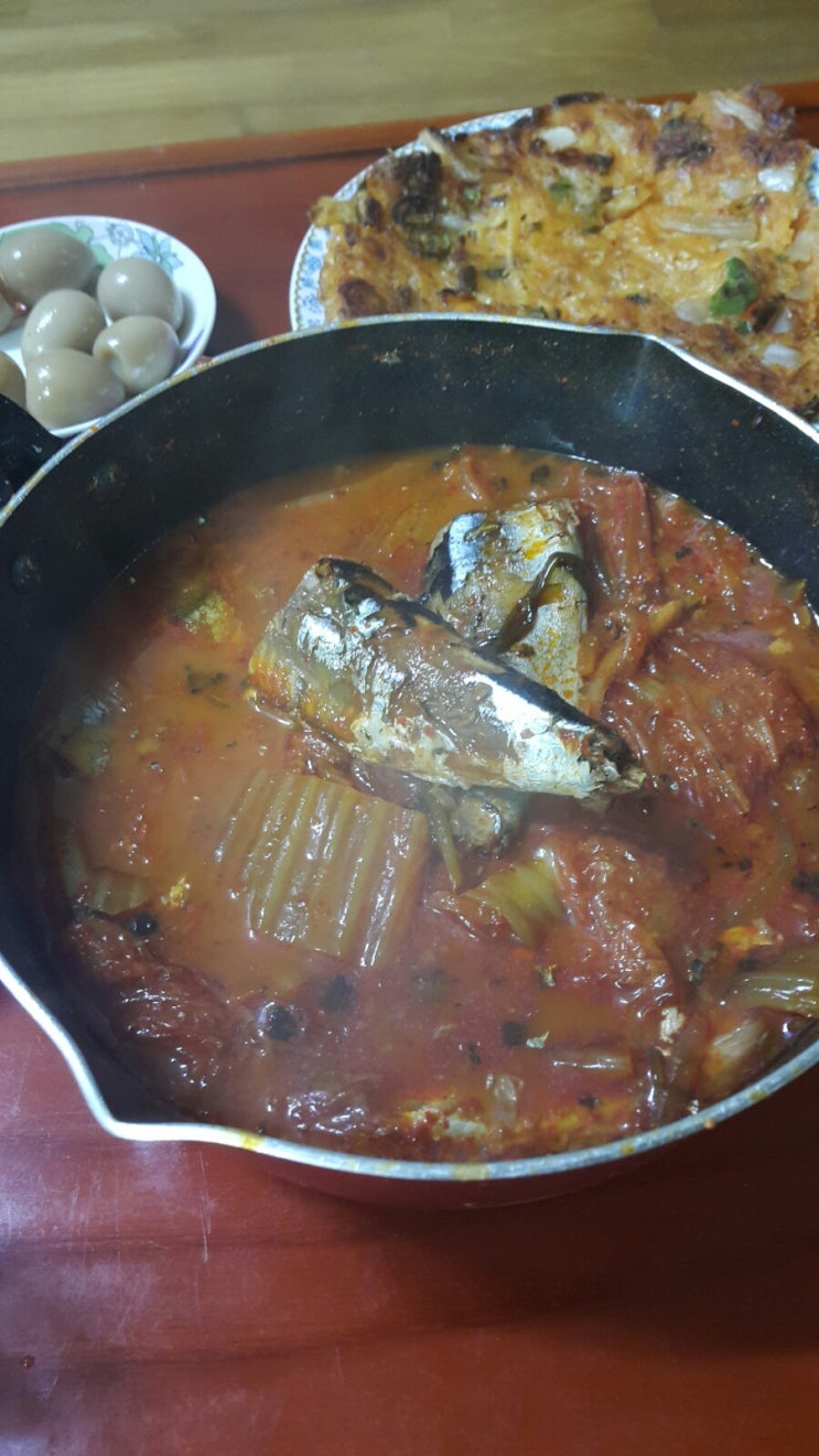 따뜻하고 얼큰한꽁치찌개 밥 그냥 먹으면 한공기 그냥 먹쬬 김치 빈대떡도 같이먹꼬♡ 맛있게 잘 먹었어요...