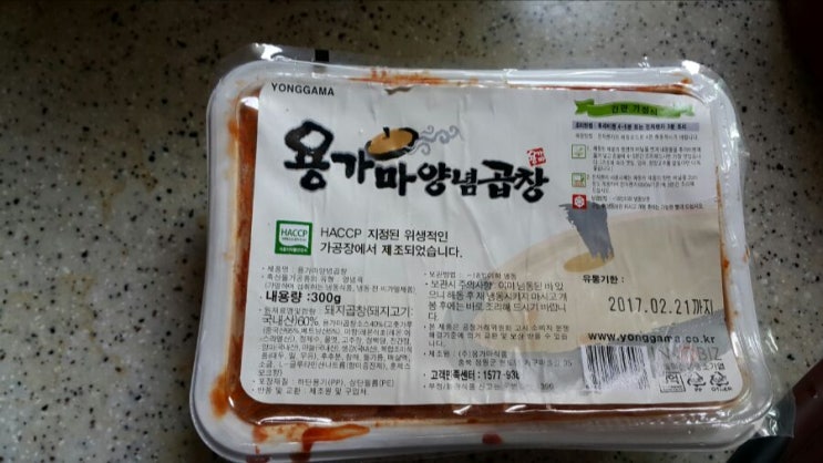 오늘은 손쉽게 만드는 곱창소개 해 드릴께요 마켓에서 직접산 제품" 용가마양념곱창입니다 요겡 제일 맛있...