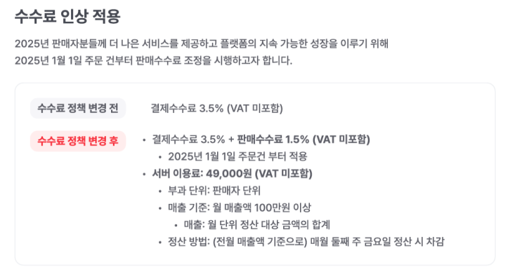 올웨이즈가 2025년 1월 1일부터 수수료가 일부 인상됩니다. 기존에 3.5%(부가세 별도)로 판매가 가능했는데...