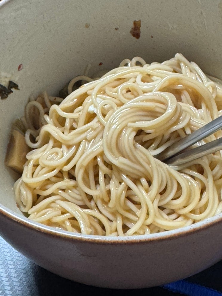 뭐 하나 빠지면 그거먼 패는 성격인데 간장비빔국수랑 알리오올리오에 빠짐 근데 알리오올리오는 냄비에서 ...