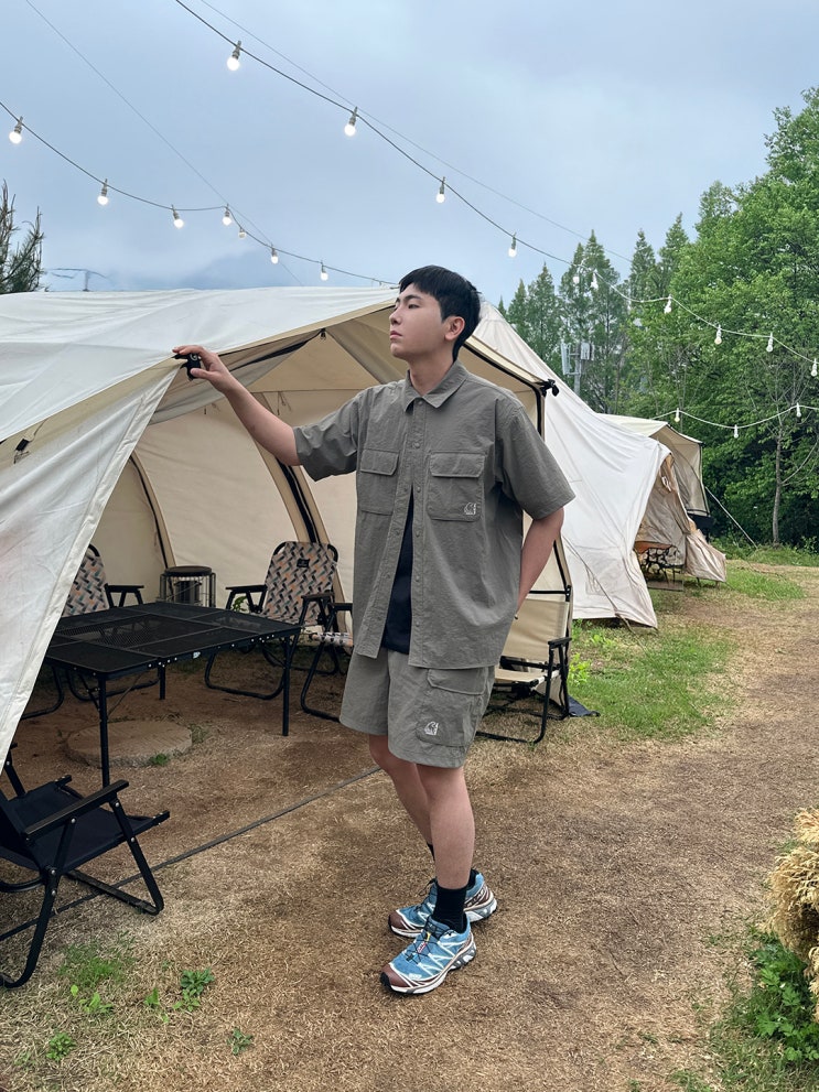 아웃도어 브랜드 노르디스크 레이사 반팔셔츠&카고팬츠 셋업 캠핑룩 추천해요