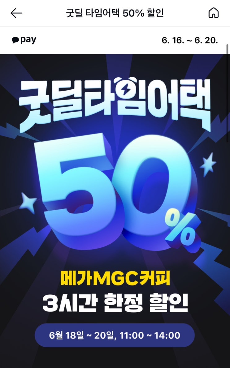 [데이로그:Daylog]카카오페이 메가커피 50%할인, 3일 3시간 한정 이벤트! 굿딜 타임어택!