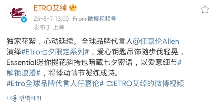 단독 비하인드, 설렘 지속. 글로벌 모델 @임가륜 Allen #Etro Limited 컬렉션 #, 하트 키 펜던트가 발걸...