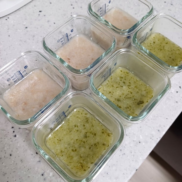 쿠진푸드스타일러 플러스 초기이유식 2단계 소고기무미음, 고구마청경채미음