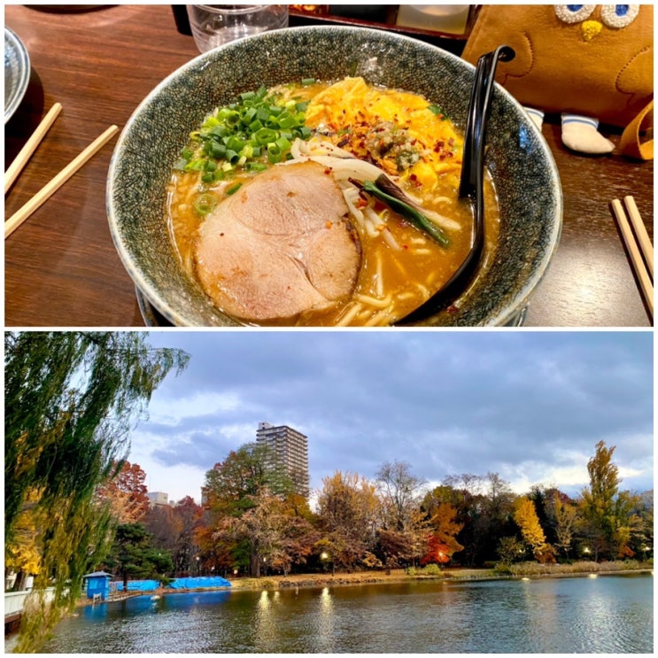 신치토세공항에서 삿포로역까지 / JR열차 자유석과 지정석/ 삿포로 이치류안 라멘 / 단풍이 절정인 나카지마공원