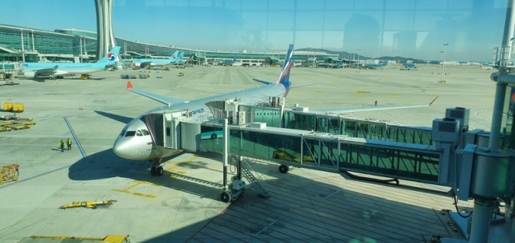 인천공항 2터미널에서 체크인 인천~모스크바 구간 비행기 러시아 항공사 기내식이 대한항공보다도 더 나았...