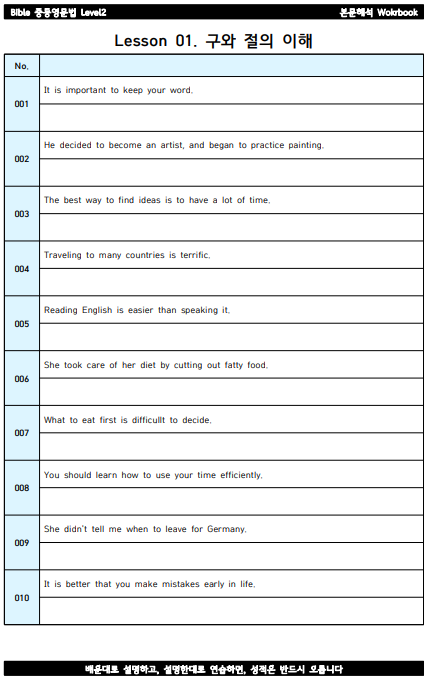 바이블 영어는 새로 등록하는 학생들을 대상으로 정직한 공부 서약서를 받고 있습니다^^ 학생과 함께 직접 ...