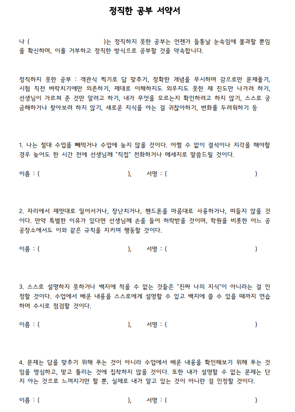 [입학상담] 정직한 공부 서약서