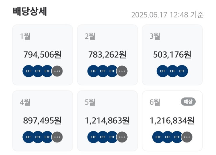 25년 6월 월초/월중 ETF 분배금 입금이 마무리되어 정리해 본다. 이번달은 월중 ETF 분배금 기준일 ...