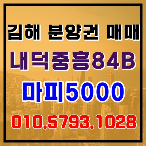오늘 소개해 드릴 매물은 김해 내덕동에 위치하고 있는 내덕 장유역 중흥 S 클래스 84타입 분양권 매매 물...
