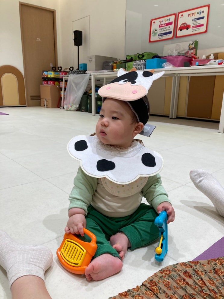 어느덧 신세계 문화센터, 4회차! 얼룩소 분장을 하고 악기를 다루는 선우! 이 날 집중을 많이 못하고 자꾸 ...