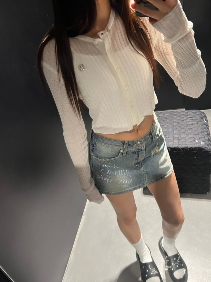 쎄미 SSEMI : 핑크 린넨 프릴 가디건 착용후기