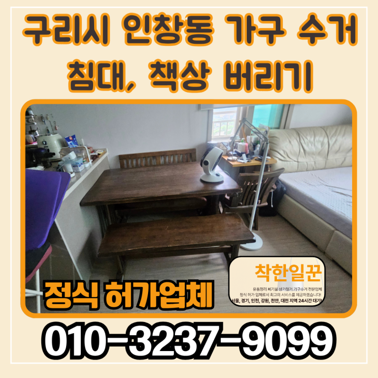 구리시 인창동 대형가구 수거침대, 책상 버리는 법 안녕하세요. 생활폐기물 수거 전문업체 착한일꾼입니다....