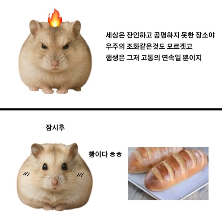 ㅋㅋㅋㅋㅋㅋㅋㅋㅋㅋㅋㅋㅋㅋㅋㅋ 화내다가 빵 보면 화가 풀리는 게 너무 귀여운 햄. 상상 속에서 분노와 ...