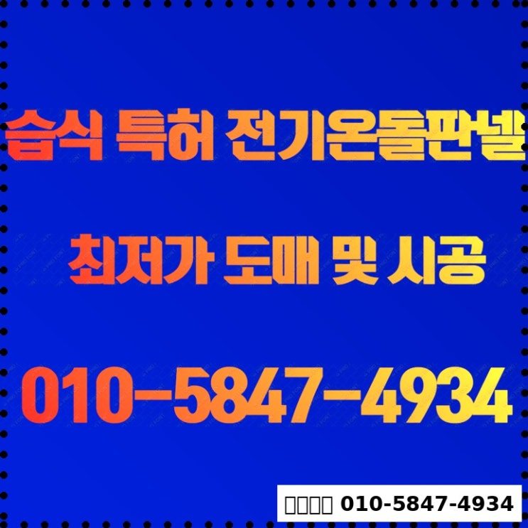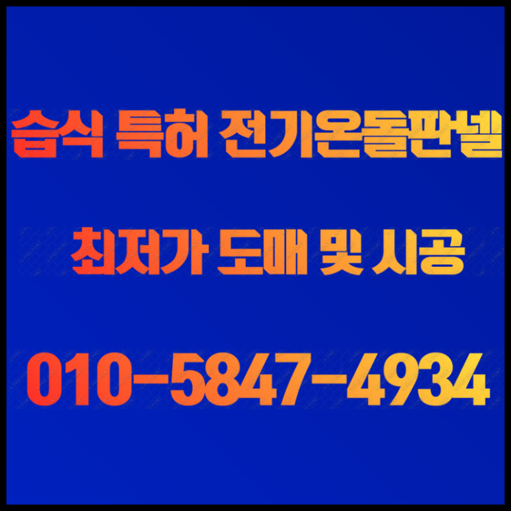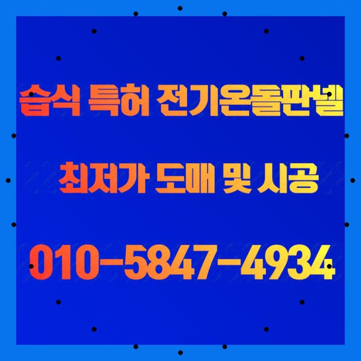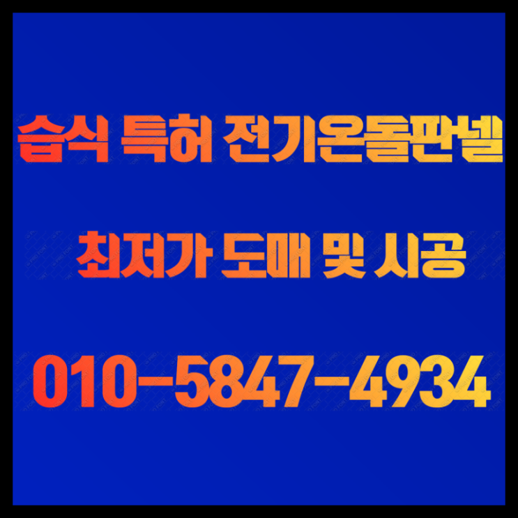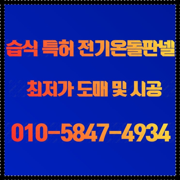 안녕하세요^^ 글로벌 최초! 초절전 습식 특허 전기온돌판넬을 개발한 (주) 태양산업 습식전기온돌판넬 입니...