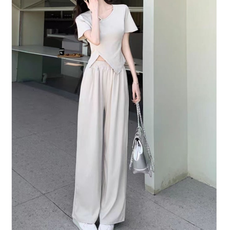 #유니크 #사선 #반팔 #투피스 #셋업 #여성 #여름 #밴딩팬츠 #와이드 #바지 #휴양지 #데일리 #상하세트 유니...
