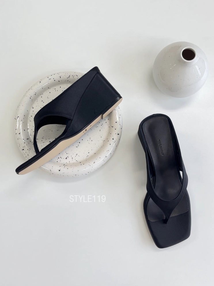 STYLE119 세련된 무드에 키높이효과까지 있는 블랙컬러의 고급스러운 웨지힐 쪼리 샌들 소개합니다! ...
