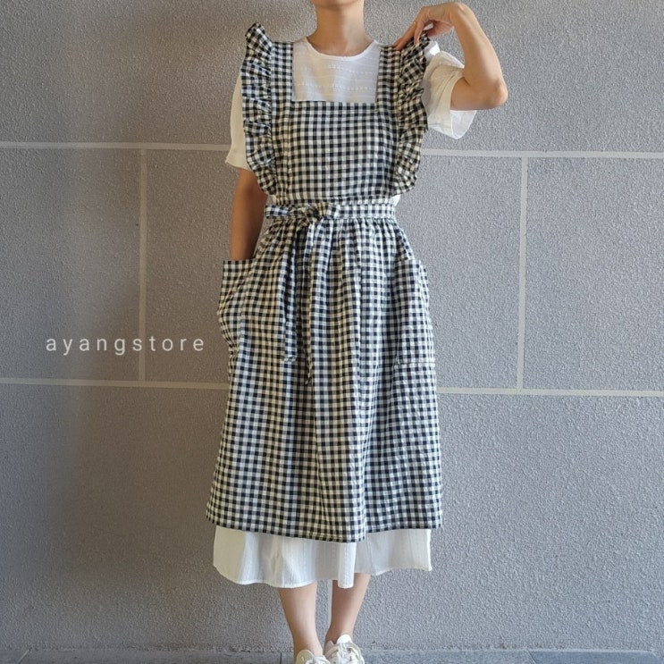 여름 체크원단 어깨프릴 원피스앞치마 (+앞치마 나눔)