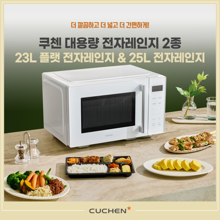 더 깔끔하고 더 넓고 더 간편하게! 쿠첸 대용량 전자레인지 2종을 소개합니다. ▼쿠첸23L플랫전자레인지 ...