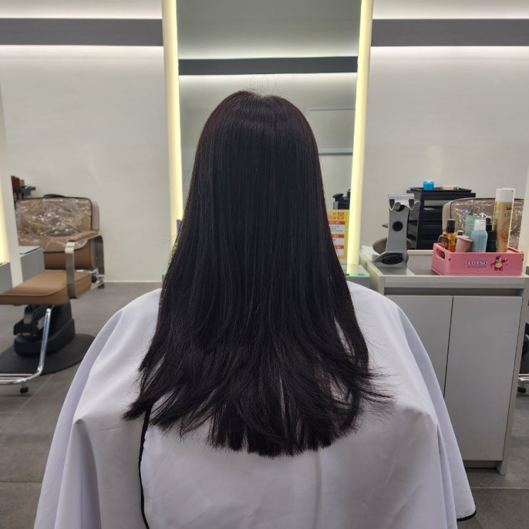 동탄 영천동 미용실 에이바헤어 동탄영천점 다크브라운 염색 후 히메컷 하기